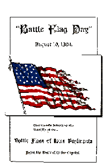 These pages are an electronic rendering of the book "Battle Flag Day", which was printed in 1896 by The State Printing Office in Iowa. The book was recently discovered by chance in an antique store by a member of the Legislative staff, and it was decided to share this unique piece of history with others through the modern technology provided in the Internet. Former Governor Frank Jackson, proclaimed August 10, 1894 "Battle Flag Day", for the purpose of paying tribute to the flags and banners carried by Iowa regiments in the Civil War, as well as to the thousands of soldiers who fought in those battles. These 138 torn and scarred flags, stored in an old armory building, were being destroyed by time. It was decided to preserve these remnants of history in hermetically sealed display cases in the Capitol Building. Businesses closed, special train fares and hotel room rates for the trip to Des Moines were arranged, and all Civil War veterans were summoned to come and take part in the procession transferring the flags up the hill from the armory to the Capitol Building. The wording, grammar, and punctuation of the original document has not been altered in order to preserve the authenticity of the emotion and patriotism expressed. For the same reason, some of the speeches may cite figures that appear to disagree with the figures used by other speakers, but these were not changed. All graphics are originals from the book. Many thanks to the League of Women Voters of Iowa and Cornell College, Mt. Vernon, Iowa, for their assistance.