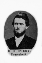 Born in Fulton county, Illinois; December 4, 1837, and came to Ottumwa from Montezuma, Iowa in 1867. He was a Civil War veteran; having been a first lieutenant in Company F. 10th Iowa Volunteer Infantry. He participated in the advance on Corinth, Vicksburg and at Mission Ridge, where he was wounded. He returned to Montezuma following the war and was elected to the state legislature as member of the House of Representatives on the republican ticket in 1865. Mr. Emery was married in Oskaloosa May 2; 1867, to Mrs. Sarah C. Holland. Mr. Emery was actively engaged in the practice of law in Ottumwa. He was a member of the Methodist Church.
