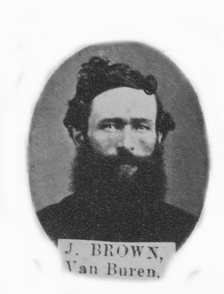Left his home in Birmingham, Iowa, to accept appointment as the First Lieutenant of Company H on July 17, 1861. He had been born on March 8, 1832 in York County, Pennsylvania. The 1860 Census of Van Buren County shows his occupation as blacksmith. Joel's first wife Angelina Griest died in 1855. He married Sarah McDonald, a native of Muskingum County, Ohio in 1862. They had one son. On October 6, 1861, Brown was made the company's captain. He was one of the courageous casualties in the Battle of Iuka on September 19, 1862 where he was wounded. He resigned his commission due to his health. Brown continued to serve his nation following the war. He served three terms in the Iowa Legislature as representative of Van Buren County, Iowa. After moving to Missouri he was in the drug store business for four years. He also served two terms as Treasurer of Knox County, Missouri. Brown was appointed Postmaster of Edina, Missouri in 1883.