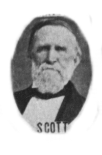Born in Ohio, March 3, 1815. He entered into the active business of life at an early age. In 1839 he was superintendent of a contract on the Muskingum river improvement and was living with his parents at McConnelsville, Ohio. A year later he was contractor on the Hocking Valley canal. Afterwards he owned and operated a merchant flouring mill at Malta, Ohio. He was married to Ellen Fay at McConnelsville in 1845. He came west early in the '50s, and for many years thereafter was contractor on various public works. At the breaking out of the late civil war, Mr. Scott volunteered in the Third Iowa Cavalry, served with distinction and was promoted, ranking as major when he retired from the service. After an active life of nearly half a century, a few years ago, he purchased a valuable farm near Farmington: He devoted his time mostly of later years to the improvement of his farm and to the development of coal mines that were opened on his place. In 1877 the people of Van Buren County elected him to the legislature by a flattering majority, he being a democrat and the county largely republican. He served his constituents faithfully, and could have been returned had he not declined a renomination.