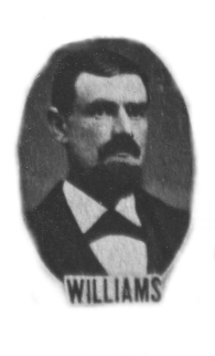 Born in Rush county, Indiana, October 17, 1833, and lived there until he came to this county in 1846, and settled in Lancaster township, where he owned a farm of 160 acres. He was engaged in agricultural pursuits the early years of his life and held various township offices. Mr. Williams having a taste for the profession of law, after preparing himself, was admitted to the bar, in April 1870. In 1877 he was elected to the lower house of the state legislature and served his term acceptably to his constituents and creditably to himself. In 1856 he married Miss Martha Vittetoe, a native of Johnson County, Indiana. She died in June 1864. He married his second wife, Henrietta Morrow, in 1866. He has one daughter by first marriage: Margaret (wife of Wm. Eulin); and four by second marriage: Martha, Lillian, Jettie, and Mattell. He practiced law in Iowa, Colorado, and Oklahoma. He was county attorney of Pawnee County, Oklahoma, when he died in 1899.