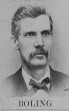 Born in Muskingum County, Ohio, December 31, 1834, and is the son of William and Julia (Grimsley) Boling both of whom were natives of Virginia. He received his education in the old subscription schools common at that early day and at the age of ten years began working at the plasterers trade with his father. In August of 1862, he enlisted in Company F. of the One Hundred and Twenty-second Ohio Volunteers. He was immediately commissioned Second Lieutenant. Mr. Boling was discharged on December 30, 1861 in Columbus, Ohio were he remained until January. 1865, when he removed to Fairfield. During the first five years after his arrival he was in the employ of the American Express Company, but his health so failed him that he was compelled to change his occupation and for a time he worked at the plasterer's trade. This was followed by one year spent as a contractor and in January, 1874, he entered upon the duties of the office of Auditor of Jefferson County, in which capacity he served the people acceptably for six years, his worth and ability having been tested and found to be in merit even above what his friends had anticipated. In 1879, he was honored with an election to the State Senate and served in that body during the sessions of 1880 and 1882. In the first Assembly, he was Chairman of the Committee on Penitentiaries, which originated a bill creating the office of warden in the penitentiary at Anamosa. He was the active spirit in securing an amendment to equalize the good time earned by convicts. Up to this time counties could vote on public improvements only at general elections, and as a result when one party championed any public enterprise, the other felt bound to oppose. It thus became difficult for a county even to erect a courthouse, and it was through the instrumentality of Mr. Boling that an amendment was passed permitting such questions to be voted upon either at general or special elections. During the session of 1882, he was Chairman of the Committee on Public Buildings and secured the passage of a bill appropriating a half million to complete the State Capitol. Former appropriations had been so small that they were largely consumed in paying the salaries of those selected to look after their expenditure and in the passage of this bill Mr. Boling performed an important work. Socially, he belonged to the Masonic and Odd-Fellows fraternities and to the Grand Army Post of Fairfield, of which he is a charter member. Mr. Boling chose as a life companion Miss Hester A. Younkin, their marriage being celebrated on the 17th of January, 1865.