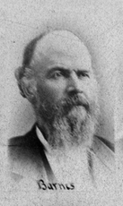 Pioneer physician of 1855, is a native of the Buckeye State, where he was born in 1832. He was reared on a farm until the age of 20, when he turned his attention to medicine, graduating at the Iowa State University in 1855, He then settled in Allamakee Co., and has since been a citizen of said county, with the exception of a few months, when he resided in Clayton Co. In 1861 he organized Co. K, 5th Iowa, which was the first company of Allamakee Co.; and in July 1861, Co. K, 1st Cav., with which he served until Dec. 16, 1864, when he resigned on account of physical disability, and was mustered out with the rank of captain. He then returned to Waukon, and has since continued his profession. He has also spent some time and considerable money in experimental farming. In 1881 he built the first silo for the State of Iowa, which he has proved a success. He has also represented his district in the legislature one term. Dr. Barnes was married in 1854 to Miss Julia A. Orr, who died in 1859, leaving one daughter. In 1862 he married Marion E. Ferris, and now has one son and two daughters.