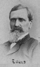 Hon. Joseph H. Evans, who passed from earth on July 9th, 1908, was born in 1822, in Maryland, being left an orphan at the age of four years; was educated in Baltimore, preparing himself for a teacher, emigrating to Indiana first, and then in 1852 to Iowa, locating in Jones County, where, while commencing the study of law, he heard and responded to the call of our martyred President Lincoln for “six hundred thousand more,” enlisting in the celebrated regiment commanded by Colonel William Smythe, known as the “Hawkeye Hounds” because they marched so far, fought so well and never tired, the regiment being assigned to the Fifteenth Army Corps, under command of General Sherman. Enrolling as a private, within three months he received the commission of Captain of Company “G,” in which he enlisted and from which he was mustered out at Louisville, Kentucky, on June 27th, 1865. He was commissioned to take eighteen hundred cattle to General Thomas, and therefore missed being with his command in the celebrated march through Georgia, but participated in many notable battles, among which were the battles of Atlanta and Jonesboro, and was with his company in the great parade of Grant’s and Sherman’s victorious armies in Washington, D. C., on May 23rd and 24th, 1865.