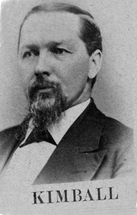 Born in the city of New York, in 1836, and is the son of Thomas D. and Mary A. Young Kimball. He was raised upon a farm, going to the usual district school, when the duties of home allowed it. But nature had implanted in his breast an ambition for nobler fields, and he, by assiduous study, fitted himself for and entered Ontario academy, at Ontario, Indiana. The talents developed by the young man, while here determined his future life, and to fit himself for it, he resolved upon a collegiate education. Entering the Michigan University, at Ann Arbor, he pursued the same course that had gained him so much credit in his academic career, and graduated with honor in the fullness of time. After his college days were ended, and previous to his coming west, he taught school for some little time. Feeling the want of a proper field, on which to display his talents, young Kimball determined upon going west, and accordingly, in 1857, came to Howard county, locating on a farm about one and a half miles from Cresco. Here he continued to reside, until 1864, when he was elected clerk of the courts, and afterwards as member of the board of supervisors of the county. These two positions he held four years to the satisfaction of the people. In 1869, on his retirement from these offices, he removed to Cresco, and established the banking house of Kimball & Farnsworth. In 1877 Mr. Kimball was elected to the state senate, from the senatorial district composed of Howard, Chickasaw and Bremer counties. At the first session, at which he was present, he was placed on the most important committees of that body. Mr. Kimball was the chairman of the state temperance association for the three years. Mr. Kimball has been married twice, the first time, in August, 1858, to Miss Irene S. Kelley, of New Bedford, Mass. This lady died in August, 1870. His second marriage was to Miss Emma W. Laird, of Indianapolis, Indiana.