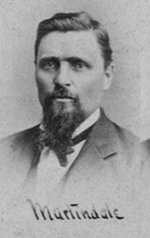 Editor and proprietor of the Murray News, was the son of Mason and Mary (Simonds) Martindale, natives of New York. He lived with his parents until twenty years old, receiving a common English education. He then learned the trade of carpenter and joiner, which he followed for a time and then engaged in farming. In 1862, he enlisted in the 142nd New York Volunteer Infantry, serving until the close of the war. He came to Muscatine County, Iowa, and in 1966 rented a farm in Clarke County. From 1873 to 1876 he was engaged in merchandising. He was then occupied as postmaster and justice of the peace until 1880. In 1879 he was chosen from this county to the Eighteenth General Assembly, in which he served one term. Mr. Martindale was married June 26, 1866, at Nicholville, St. Lawrence County, New York to Jane D. Clark. He was a Republican, a Good Templar and a member of the Grand Army of the Republic. He and his wife belong to the Baptist Church.