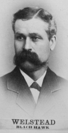 Born in Allegany County, New York, January 24, 1838, and is a son of John and Margaret (Wilcox) Welstead. Thomas Welstead was only a child of 10 years when he left the parental roof, which the loss of his mother made seem less a home. He went to school in Allegany County and was a classmate of United States Senator Teller, long before the great silver deposits were found in the West that made the latter a millionaire. Mr. Welstead remained in New York until he had attained his majority, working faithfully and industriously at whatever he found to do in the way of honest labor, but watching for an opening to better his condition. In 1863 he left the Empire State for the West and lived two years in Carroll County, Illinois, engaged in farm work, before he came to Black Hawk County, Iowa, in the fall of 1865. Mr. Welstead was one of the first settlers in Bennington. His first few years were filled with strenuous work and he was obliged, like others, to endure many of the privations necessarily attendant upon pioneer life, but perseverance and industry brought their reward. Soon acre was added to acre, the whole extent of the property under his control was put under cultivation, substantial buildings were erected, orchards and shade trees were set out, and comfort and plenty took up their abode. Mr. Welstead purchased land until he owned a farm of 240 acres, which he sold in order to remove to Waterloo, to give his children educational advantages. After settling in Waterloo, Mr. Welstead engaged in the buying and shipping of stock. While residing on his farm in Bennington township he served as school director, township trustee and township assessor, and on all occasions displayed the public spirit and desire to be of service to his fellow citizens that has been one of his notable characteristics. In 1882 he was elected by the Republican party, of which he has always been a staunch adherent to the State House of Representatives. and during his term of office served the county well. He was on the school committee when the second appropriation was made for the Iowa State Normal School at Cedar Falls. In 1879 he was elected a member of the Board of County Supervisors. At Allegany, New York. Mr. Welstead was married to Lucy Bennett, a daughter of Henry Bennett. Fraternally, he is a member of the Independent Order of Odd Fellows lodge at Waterloo.