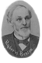 John Ryder, who was a member of this body in the Twentieth and Twenty-first General Assemblies, died at Vinton, August 13, 1911, the day he completed his eightieth year. Mr. Ryder was a native of the state of Ohio, born near Tiffin. He got the ordinary schooling of the locality and, reaching manhood, went into mercantile business, and bought and shipped grain extensively, having two elevators. In 1870 he came to Iowa and engaged in buying and shipping butter, eggs and country produce, and did at one time a business of the kind hardly surpassed in volume in this state, shipping to the great markets east and west. Mr. Ryder was for one term a member of the Ohio legislature. After coming to Iowa he was elected to the House of Representatives of this state. In 1883 he was chosen senator. Politically, he had been a republican until the presidential campaign of 1872, when he supported Horace Greeley; thereafter he acted with the democratic party and was the first democrat chosen to the legislature for many years from Benton county.