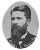 Born in Darlington, Canada, September 26, 1843, and when a little child of about two years was taken to Byron, Wisconsin, by his parents, Jasper A. and Laura A. (Sumner) Clarke. Andrew D. Clarke largely acquired his education in the country schools of the town of Byron, Fond du Lac county, Wisconsin, but in the school of experience has also learned many valuable lessons. At the age of seventeen years he put aside his textbooks and thereafter gave his undivided attention to farm work until twenty-four years of age when he came to Kossuth County, Iowa. Here he entered upon the study of law and after a course of thorough reading was admitted to practice in 1868. He at once opened a law and real estate office and has since conducted a real estate business. In 1870, however, he abandoned the practice of law to concentrate his efforts upon other interests. He has always engaged in farming, although not himself an active worker in the fields. His first venture in the financial field was in assisting in organizing the First National Flank at Algona in the '80s. In 1892 he became an active factor in organizing the Algona State Bank. On the 22d of February, I864, at Byron, Wisconsin, Mr. Clarke was married to Miss Mary Jo Phelps. In national affairs Mr. Clarke has always been a republican arid is instinctively a progressive republican. He fought for fifteen years to give Iowa a progressive governor and succeeded when was made the notable fight against Cowles and Ingham, "standpat" newspaper men from Kossuth county. This contest succeeded in landing Cummins in the governor's chair and later in the United States senate, where he has no superior. This turn of political affairs drove Cowles and Ingham into the progressive rank and they are now publishing the Des Moines Register and Leader. He served for one term as a member of the city council in Algona, was a member of the republican state committee for two terms and represented Kossuth County in the twenty-second general assembly in 1888-89. In 1904 he was presidential elector, casting his ballot for Roosevelt, and he was made a delegate to the republican national convention in Chicago in 1908, which nominated William H. Taft, and was chosen to represent Iowa on the committee, which went to Cincinnati, to notify Mr. Taft of his nomination. He refused the nomination for lieutenant governor in 1910. In 1897 Mr. Clarke aided in organizing the Yeomen lodge, an insurance society, and was the first grand fireman of the first lodge, No. 1. of Bancroft, Iowa. He is a charter member of Algona Lodge, No., 203, A. F. & A. M., and he also belongs to the Minneapolis Commercial Club.