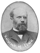 NORMAN BRUCE HOLBROOK was born in Somerset county, Pa., April 25, 1836; he died in Marengo, Iowa, Nov. 4, 1903. In 1857 he came to Iowa county, locating near Millersburg, where he taught school. In 1859 he was elected sheriff of the county, holding the office four years. For two years he owned and published The Iowa Valley Democrat. He was a member of the house of representatives in the 17th, 20th, 21st and 23d General Assemblies, elected as a democrat. For years he was identified with the official life of the town and county. He served as a member of the county board of supervisors, member of the town council, and of the school board. He organized the Marengo Savings Bank and for a long period was its president.