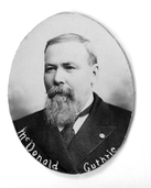 Following his retirement from active farming he engaged in the grain business, and also banking. He organized the Bayard Savings Bank and for many years was its president. Mr. McDonald was always looked upon as a leader in all public meetings. He was always on the square with everyone, and his word, once given, was most sacred. He was always ready to help any worthy person in time of need, and many young and middle aged people of the community secured their start in life only through his aid and assistance. He did not wait to be asked, but volunteered help to many a poor boy.