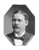 It may be said of Gilbert S. Gilbertson that he was a self made man and the positions to which he arose during his life was due to the fine personality and native ability he possessed. He first entered public service in 1889 when he was elected to the position of clerk of the District court of Winnebago County, Iowa, which position he held for four consecutive terms. In 1896 he was elected State Senator on the Republican ticket from the forty-fist district consisting of Mitchell, Winnebago and Worth counties. He was a prominent member of the state Senate and his conspicious service and ability led to his nomination and election in 1910 to the office of State Treasurer of Iowa which position he held for six years. He was a business man of more than ordinary ability and was a man of enterprise and public spirit. Besides his public activities he was always active in business and particularly banking and real estate and his connection with the business was considered an asset and sought by leading business men of the state. His activities in insurance and fraternal circles made for him a large number of acquaintances and warm friends.
