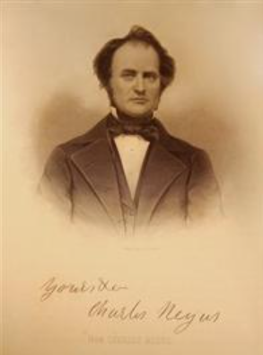 Born on December 19, 1815, in Webster, Worcester Co., Massachusetts, he was the only child of Susan (Cortis) and Lyman Negus. Charles graduated in 1838 from Wesleyan College in Middletown, Connecticut, and then for a year taught privately near Dinwiddie Courthouse in Virginia. He was admitted to the bar in 1840, and came the following year to Fairfield, Iowa, where he practiced law for the next 36 years. In 1844 Charles was a trustee of the Methodist Mission in Fairfield; that same year he married Martha Eleanor Smith of Richmond, Virginia. Fairfield rewarded Charles for his energy and diligence; he served as county judge of Probate Court in 1844-1846 and 1856, representative to the General Assembly in 1850, president of the Fairfield and Mt. Pleasant Plank Road Company in 1852-53, and treasurer or president of the Jefferson County Agricultural Society from 1852 for ten years. During the antebellum years Charles Negus continued to excel, serving as West Point visitor in 1855, and as the county's prosecuting attorney in 1857. But Negus was a dedicated Democrat, and when the Civil War erupted in 1861, he was the only attorney in Fairfield who refused to take the oath of allegiance to support the U. S. Government: an oath moved by Democrat George Acheson and seconded by Republican James F. Wilson. During the War Acheson became a Republican, but Negus remained ever a Democrat and "Copperhead," and was a delegate to the National Democratic Convention in Chicago in 1864. During those difficult years, Negus was reviled as a traitor by many former friends. Charles's honor was not permanently stained by the war; he served as president of the Iowa Railroad Company from 1865 to 1877, and as president of the City Board of Education from 1868 to 1877. He held the first meeting in 1874 to encourage Parsons College to come to Fairfield.