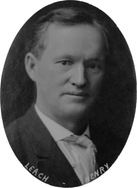 ELMER F. LEACH was born on a farm in Henry County, Iowa, April 21, 1865, and died in Mount Pleasant July 25, 1932. His parents were James M. and Nancy (Campbell) Leach. He attended rural public school and later Howe’s Academy at Mount Pleasant. He followed the vocation of farming and live stock raising. Besides holding local offices he was elected representative in 1910 and served in the Thirty-fourth General Assembly. A Democrat in politics.