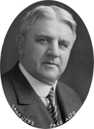 WILLIAM E. G. SAUNDERS, banker, soldier and legislator, died at Altadena, California, January 16, 1947; born in Blairgowrie, Scotland, in 1865; came to America in 1882; lived four years in New Mexico and located at Emmetsburg, Iowa in 1886; associated with the old Scottish-American Land Company, and was one of its agents in northwest Iowa; became captain of Old Company K, Emmetsburg’s Iowa National Guard unit; served as quartermaster of the 52nd Iowa Volunteer Infantry during the Spanish-Ameican war; became president of the former Commercial bank at Emmetsburg before it was absorbed by the First National Bank, and was a director of the latter bank; served the state banking department as a bank receiver; a member of Fortieth, Fortieth extra, Forty-first, Forty-second and Forty-second extra sessions of the Iowa House of Representatives; always an active and energetic civic-minded citizen, influential in his section of the state; after retirement from business removed to California, where three sons are living—George, a Los Angeles banker, Gordon, a lawyer there, Ewart, residing at San Mateo, and the only daughter, Mrs. William del Valle (Vina Saunders), has been in California with her family, but soon will remove to Seattle, Washington.