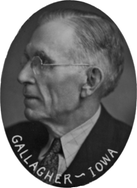 JAMES P. GALLAGHER, editor and legislator, died at Mercy hospital at Davenport, March 3, 1946; born on a prairie farm near Williamsburg, Iowa, in 1858 and his home has always been near the place of his nativity; educated in the rural schools; editor of the Williamsburg Journal-Tribune since 1901 until he retired several years ago; represented Iowa county in the general assembly in eight sessions, including an extra session devoted to the revision of the code of Iowa; unmarried, a Democrat in politics, and a member of the Catholic church.
