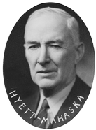Frank E. Hyett was born in Batesville, Ohio, in 1868, and came to Iowa when he was a young man. He worked at various jobs and finally obtained a position with the Hawkeye Lumber Company at Oskaloosa, Iowa. He worked for this company for a good many years and finally became the manager. He was a partner in and operated the Hyett Synhorst Lumber yard at Oskaloosa for seven years and then moved to Wright, Iowa, where he purchased a lumber yard and elevator and remained until his death on March 23, 1940.